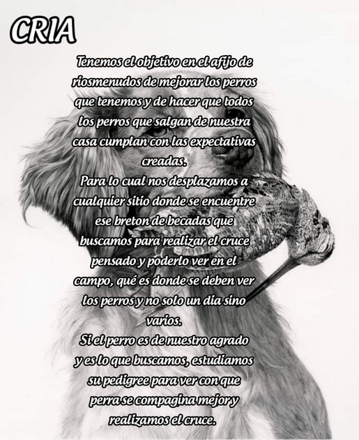 Por eso queremos que sepais como es nuestro metodo y como se trabaja en el afijo "DE RIOSMENUDOS" siendo uno de los pioneros y exponente de los bretones para cazar becadas en españa,al que muchos tratan de imitar.